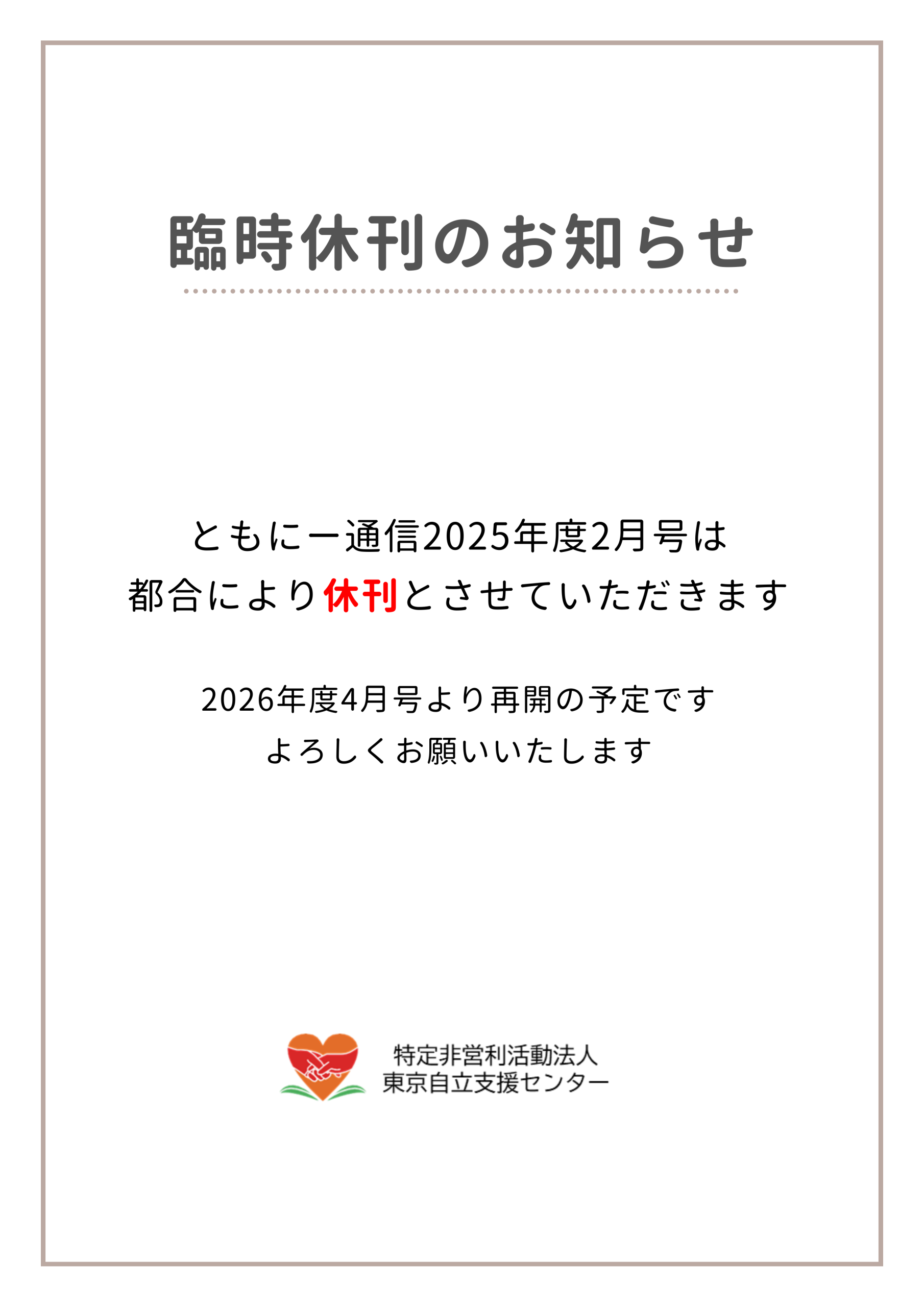 【休刊】2025年度ともにー通信2月号